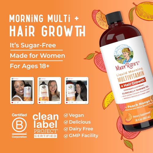 MaryRuth's Liquid Multivitamin + Lustriva® Hair Growth | Biotin 10000mcg | Vitamin D | B Vitamins | Clinically Tested for Thicker Hair, Wrinkles, Fine Lines, Skin Care | Ages 18+ | 30 Fl Oz